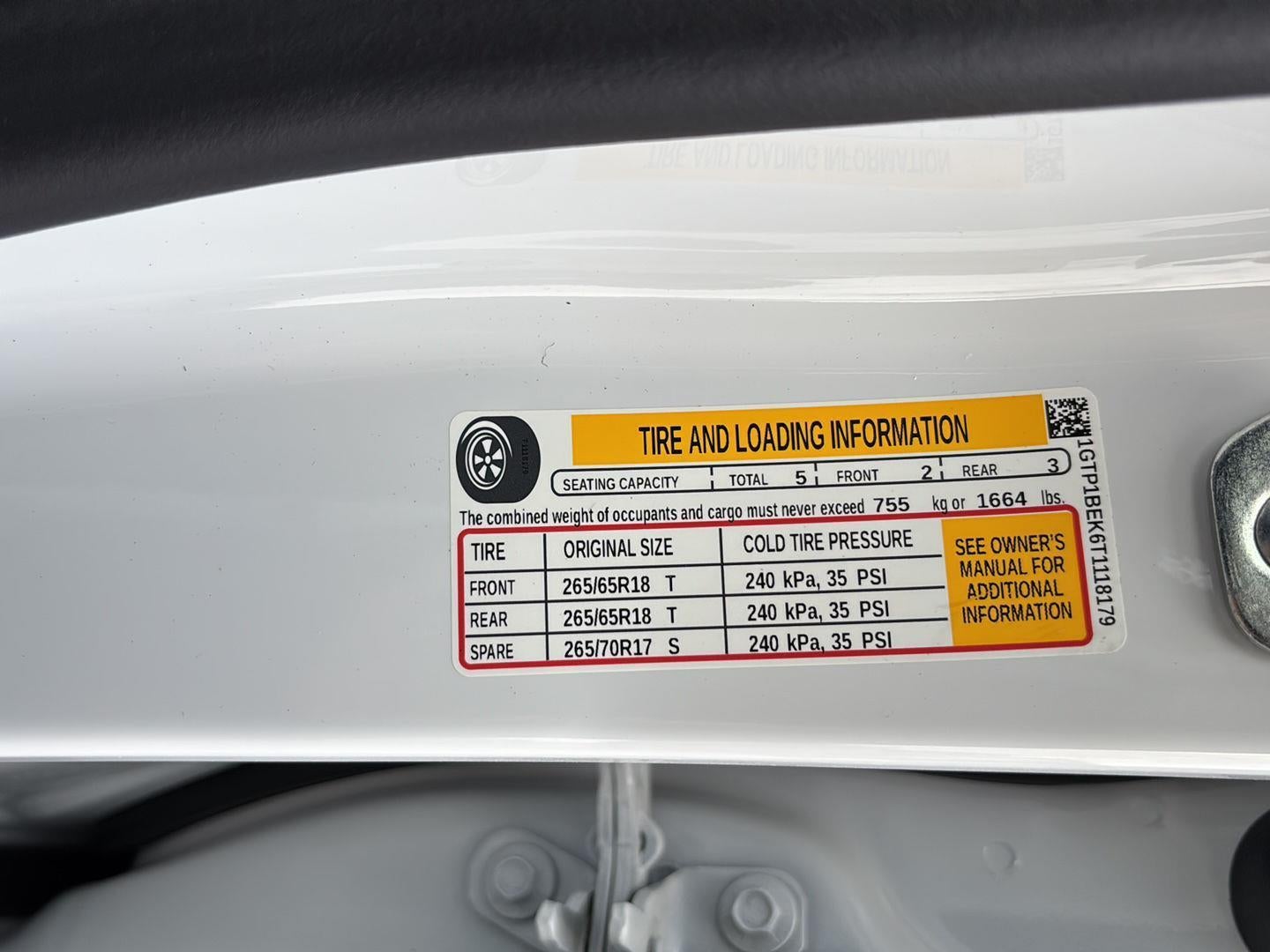 - Tire pressure display of current PSI available in the Driver Information Center